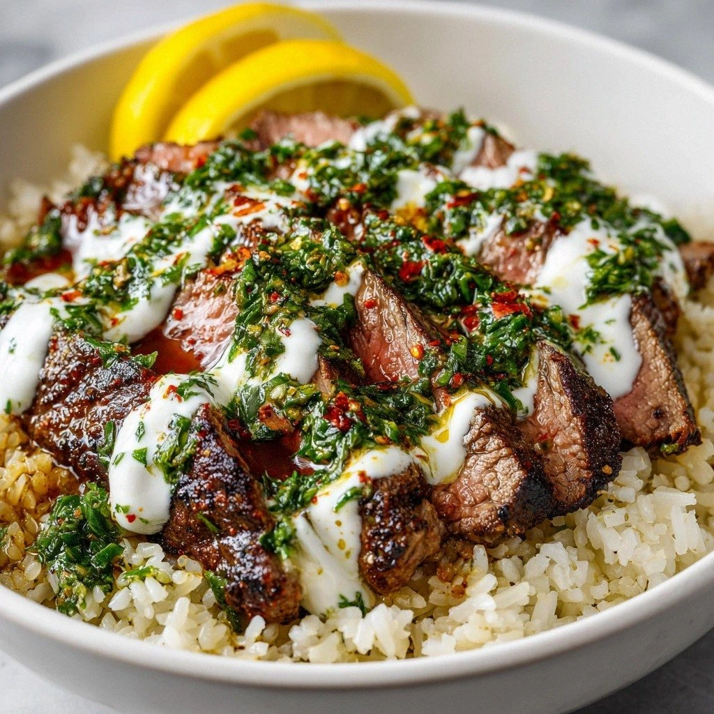 What makes this version of a classic steak bowl stand out isn’t just the bold flavors; it’s the way each component is elevated to a new level of culinary artistry. The chimichurri isn’t a thin sauce—it’s a vibrant, herb‑rich emulsion that clings to the meat like a second skin, delivering a punch of freshness with every bite. The Greek yogurt drizzle adds a silky, cool counterpoint that softens the heat and balances the richness of the steak. And the base—whether it’s fluffy quinoa or a bed of jasmine rice—absorbs every drop of sauce, turning the bowl into a symphony of textures and tastes.