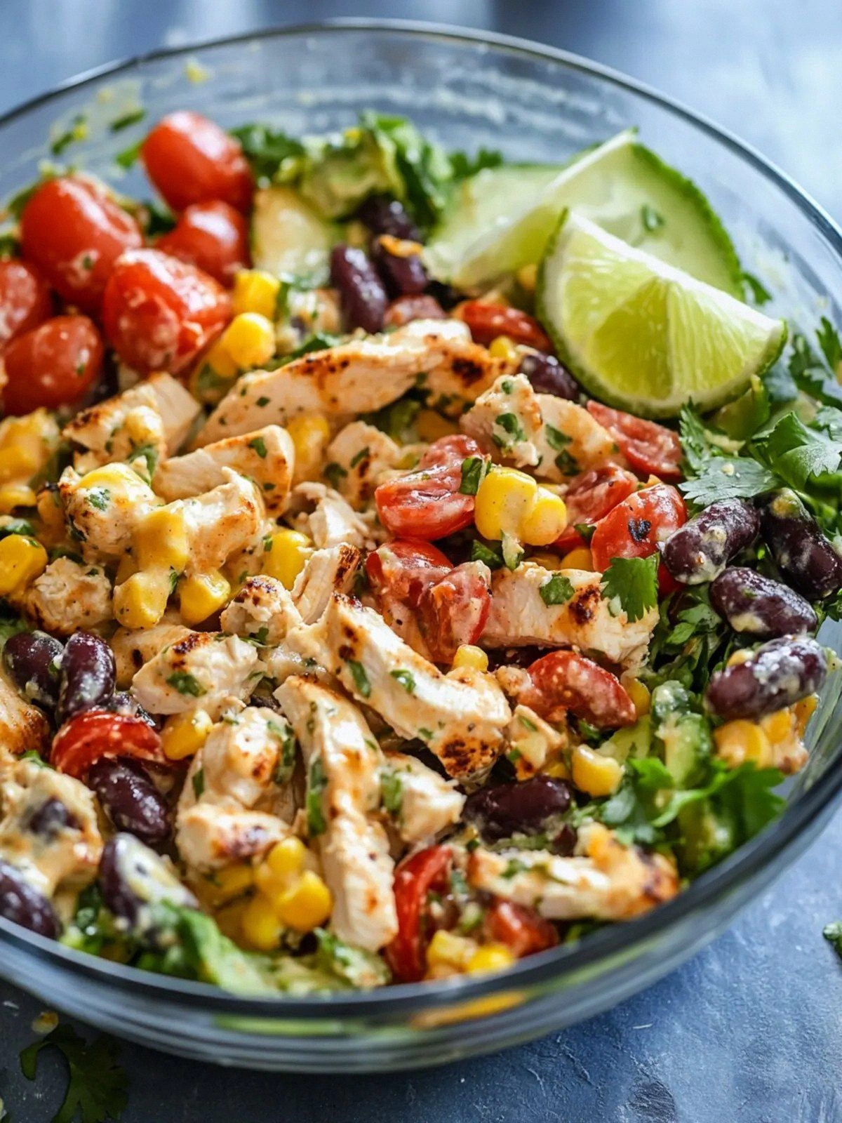 Swap the shredded chicken for thinly sliced grilled chicken strips. The charred flavor adds a smoky depth that pairs beautifully with the lime. Serve the salad on a bed of arugula for an extra peppery bite. This version is perfect for a summer barbecue or a quick weeknight dinner.