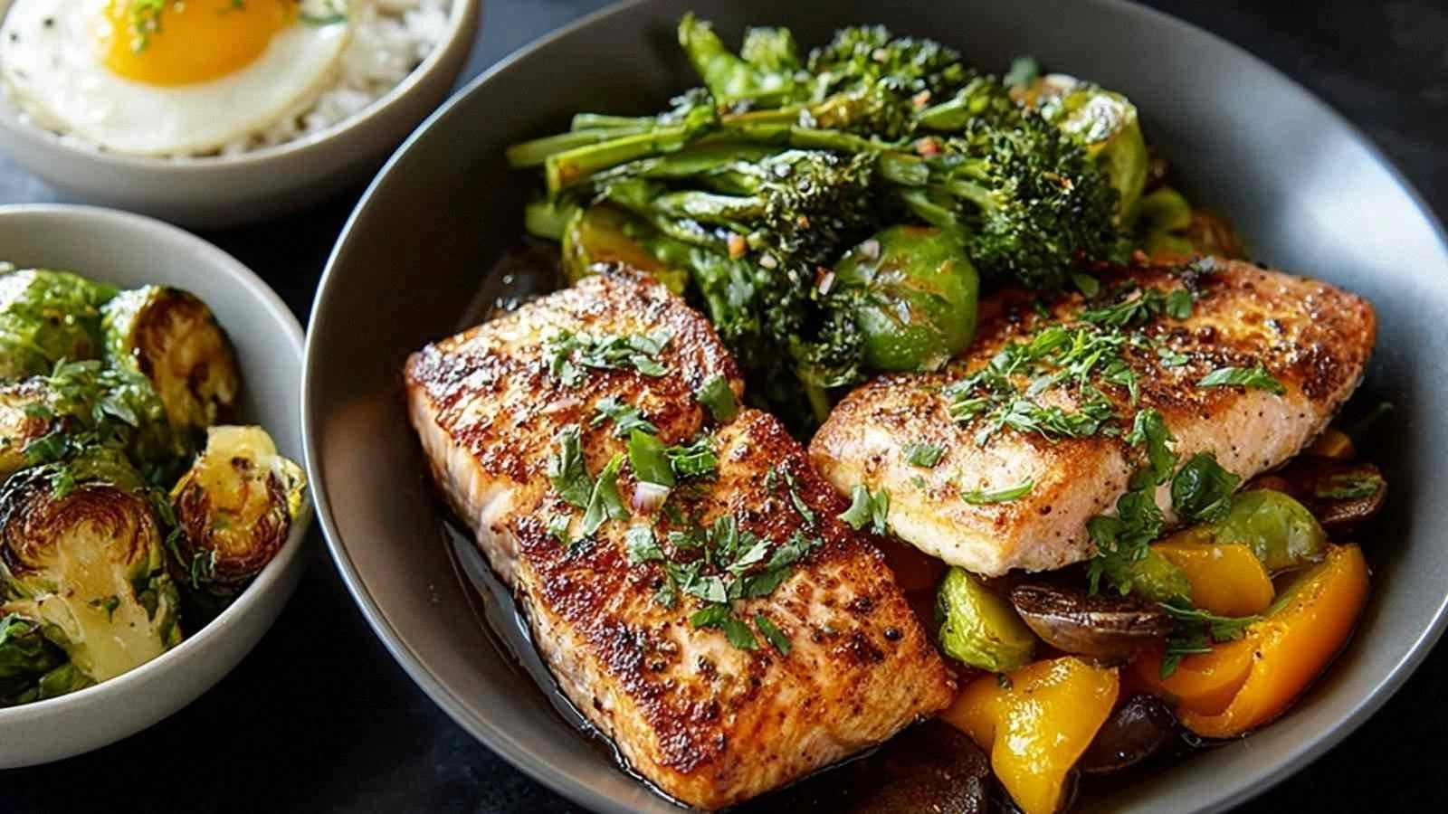Serve the chicken and vegetables over a bed of sautéed spinach and a poached egg. The combination turns this dish into a hearty, protein‑rich breakfast that keeps you full until lunch.