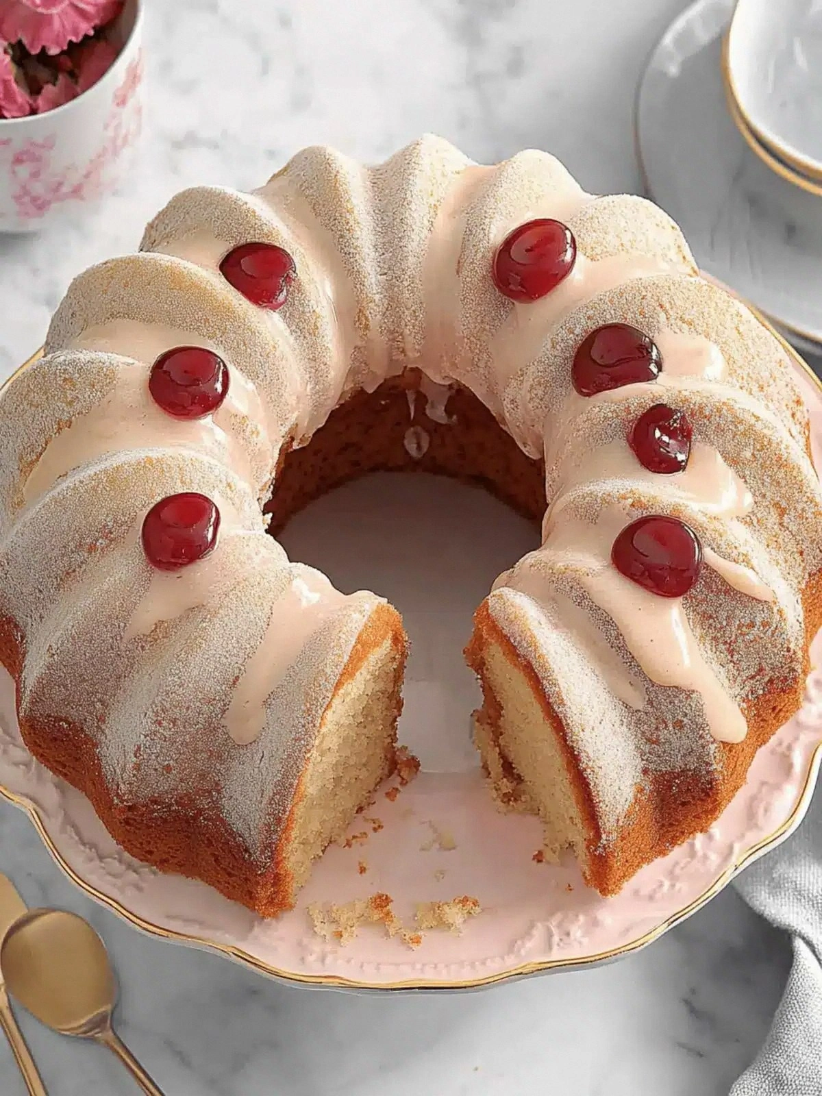 A splash of milk (3 tablespoons) is added to the powdered sugar glaze to create a thin, pourable glaze that coats the cake like a glossy film. This glaze not only adds sweetness but also enhances the cake’s appearance, making it shine like a polished gem. If you prefer a thicker glaze, simply reduce the milk to 1 tablespoon.