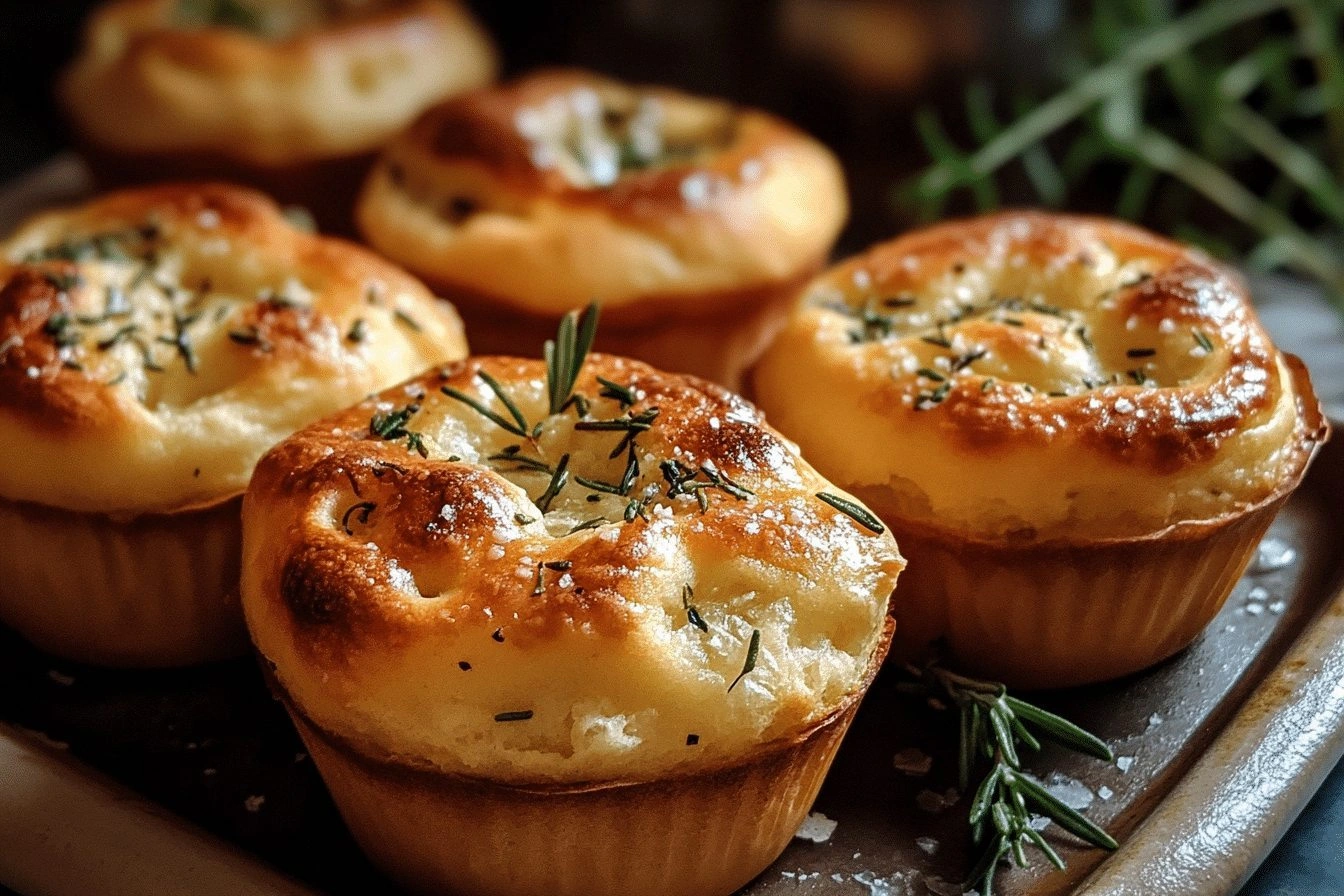 Close your eyes and imagine the first bite: a golden crust that cracks like a sunrise, revealing a pillowy interior that melts in your mouth. The aroma of fresh rosemary and garlic wafts through the air, mingling with the buttery scent of olive oil. You hear the gentle pop of steam as the muffins rise, and feel the warm, slightly tacky dough beneath your fingertips. The taste is a harmonious blend of savory herbs, a hint of sweetness from sugar, and the subtle richness of extra‑virgin olive oil. Every element sings in unison, turning a simple snack into a sensory experience.